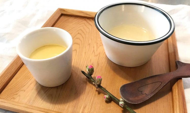 3 器をかたむけて流れなければ茶碗蒸しの出来上がり
